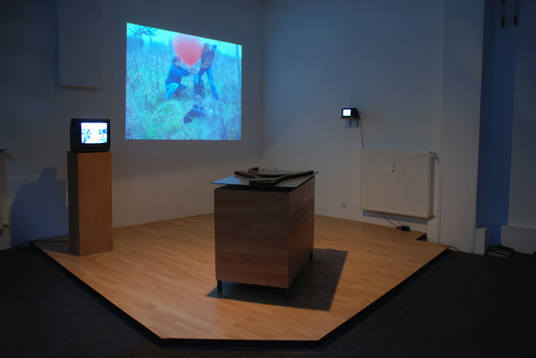 3 Michalis Nikolaides / Kai Rheineck Über Tunnel und Landschaft, 2009 Videoinstallation Ein Beamer, zwei TV Geräte, ein Modell, MDF, Laminat, Neofloor
