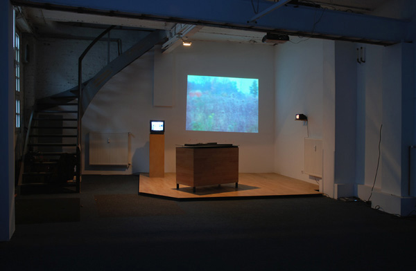 2 Michalis Nikolaides / Kai Rheineck Über Tunnel und Landschaft, 2009 Videoinstallation Ein Beamer, zwei TV Geräte, ein Modell, MDF, Laminat, Neofloor