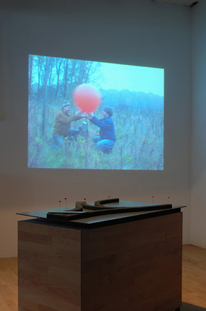 5 Michalis Nikolaides / Kai Rheineck Über Tunnel und Landschaft, 2009 Videoinstallation Ein Beamer, zwei TV Geräte, ein Modell, MDF, Laminat, Neofloor