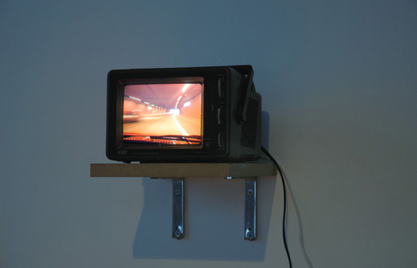 7 Michalis Nikolaides / Kai Rheineck Über Tunnel und Landschaft, 2009 Videoinstallation Ein Beamer, zwei TV Geräte, ein Modell, MDF, Laminat, Neofloor