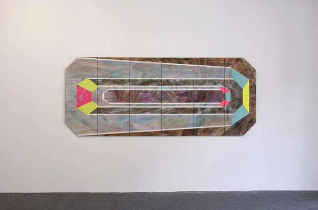Buntstift, Acryl, Lack, Spray auf Siebdruckplatte